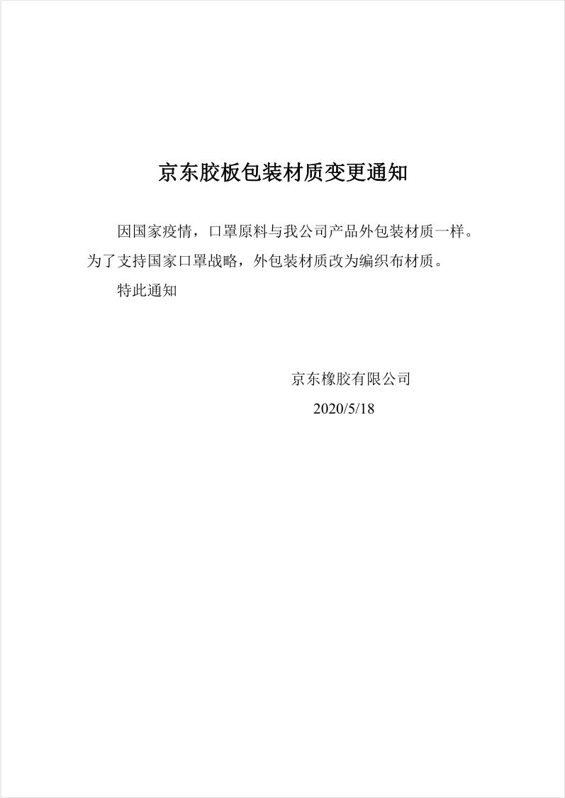京東橡膠板包裝材質(zhì)變更通知